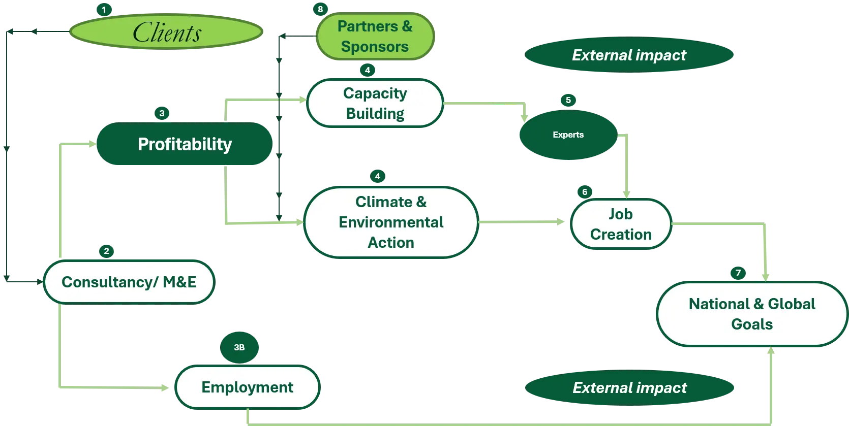 Our profit-generating consulting work allows us to reinvest funds into meaningful climate initiatives as well as workforce training and education. This dual-purpose approach tackles environmental sustainability while cultivating professional expertise – both of which are crucial for advancing societal goals at regional, national, and global levels.